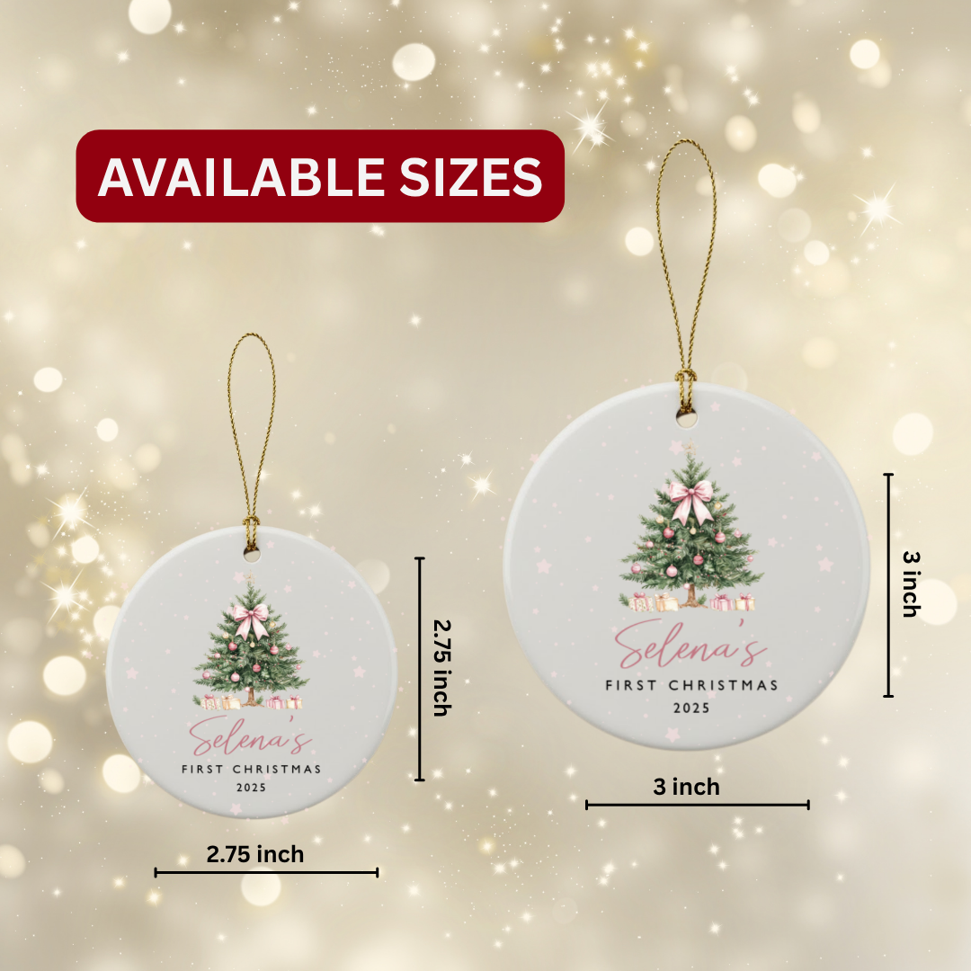 Commemorate your little one’s very first Christmas with this charming ceramic ornament. Crafted from high-quality white ceramic, this ornament is available in 2.75-inch and 3-inch sizes, making it a perfect keepsake to mark this special milestone. Its minimalist design and smooth finish make it a timeless piece that complements any holiday décor — from cozy nurseries to family living spaces.