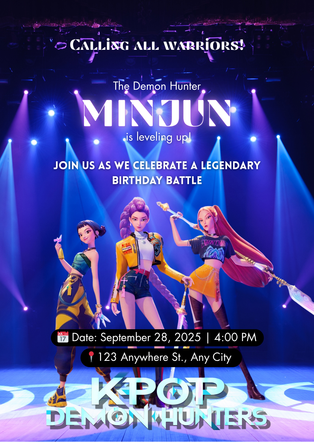 KPOP Demon Hunter Birthday Invitation Template