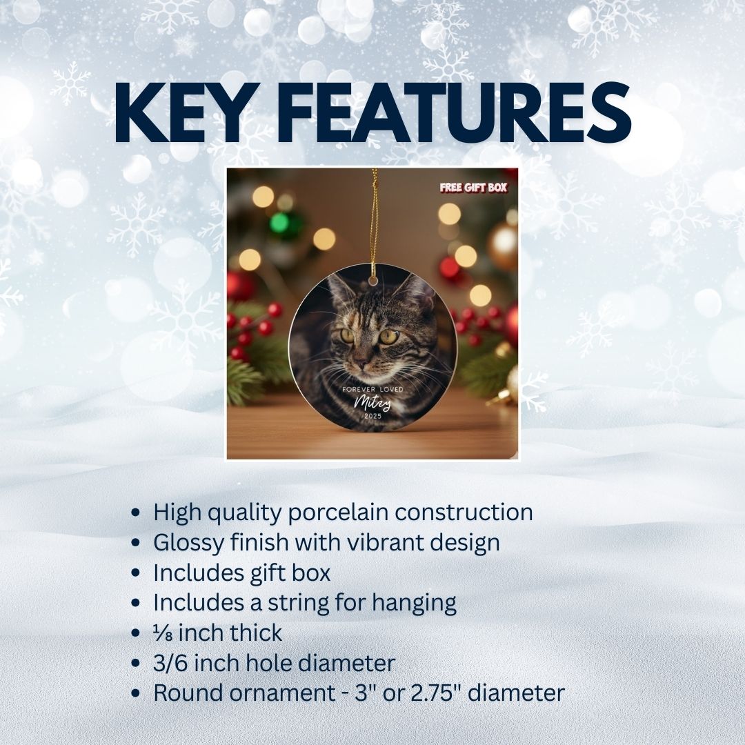 Made from high-quality white ceramic and available in 2.75-inch or 3-inch sizes, its smooth finish and minimalist design ensure your photo remains the centerpiece—offering comfort, remembrance, and a loving touch to your holiday décor.