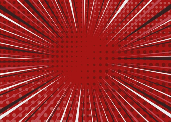 • A bold, superhero-inspired invitation design featuring red and blue accents and comic-style details